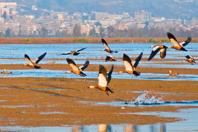 每年冬季,大批候鸟南北迁飞来此停歇、觅食,游客在不加隐蔽的情况下,可以与黑颈鹤接近的距离近至10米,令人异常兴奋,被国际国内誉为“世界十大最佳湖泊观鸟区之一”。