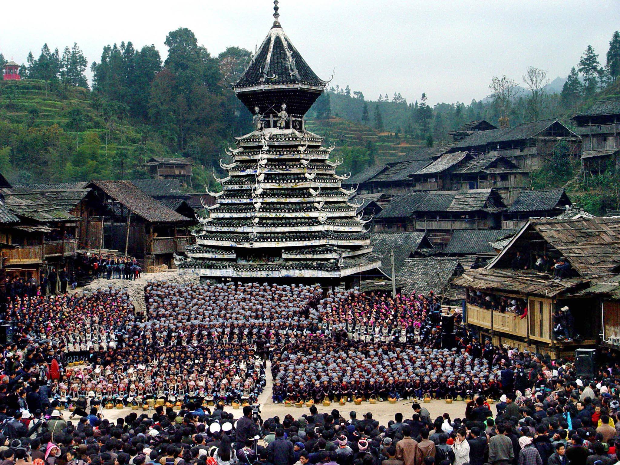 村寨四周古木葱茏,古楠木树达400多株,体现了侗寨人与自然相和谐的“老人护村,古木佑寨”的传统观念。