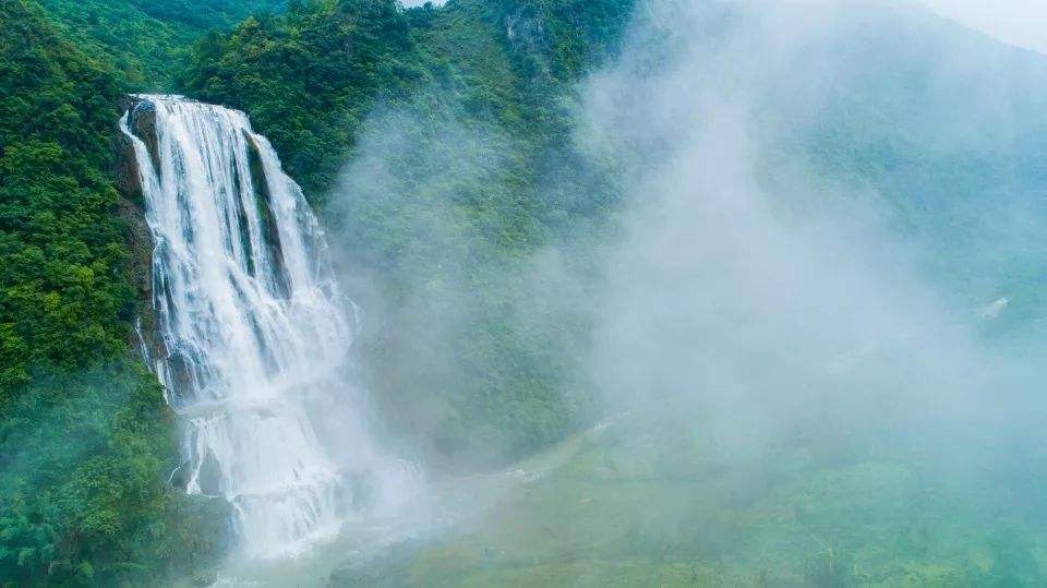 滴水滩瀑布位于黄果树瀑布以西6公里,关岭县境内,瀑布总高410米,为黄果树瀑布的六倍,最下层130米,雄伟磅礴。站在大坡顶遥望整个瀑布,瀑布就仿若身着白色衣裙的天仙,议态万方地从万顷冷绿之中露出她的身姿。山上为错落有致、景色优美的布依族村寨鸡窝田,距村落2公里处为多级瀑布群(滴水滩瀑布)。美丽的田园、梯级瀑布、优雅恬静的布依族村寨,组成一幅优美的田园风光画。