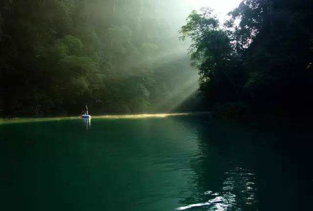 蛤蚌河河水全程清澈纯净,水深多数深不过膝,水色浅则无色,深则呈绿,绿色由浅入深,由深变浅,循环往复变化。水流缓、急、回旋相交织,各形状绿滩镶嵌河道,又恰似镶在带上的绿色宝石。水势水色极其喜人,令人如痴如醉,也因此而有“贵州九寨沟”之美称。沿途河谷时窄时阔,窄时幽深不见日月,浓荫林木蔽天,偶有猴群弹枝飞跃而过;阔时豪迈奔放,远处奇景一览无余,近处岸边芦苇连片,河岸芦苇躬身拂水,情景别致。