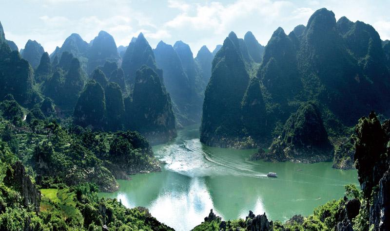 万峰湖是国家重点水电工程天生桥高坝电站建成蓄水后形成的人工湖,因被万峰环绕而得名。湖内有上千座全岛、半岛,还有大量的水产养殖网,沿岸则遍布着许多少数民族山寨。