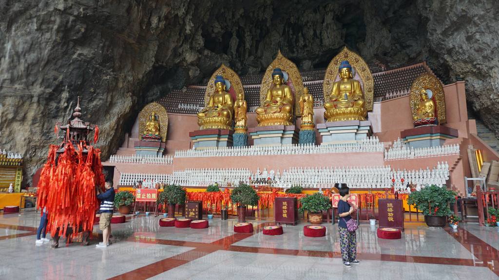 万佛寺建于明嘉靖年间,洞宽126米、高82米,洞中奇观千姿百态,造型完美,堪称洞中精华。塑有释迦牟尼、弥勒、观音、地藏诸菩萨像,建有大雄宝殿、弥勒殿、观音殿、地藏殿、斋堂、客堂,有僧众锡道场十余人,洞内墙壁上还摆放了几千个小佛像,寓意万佛朝宗。