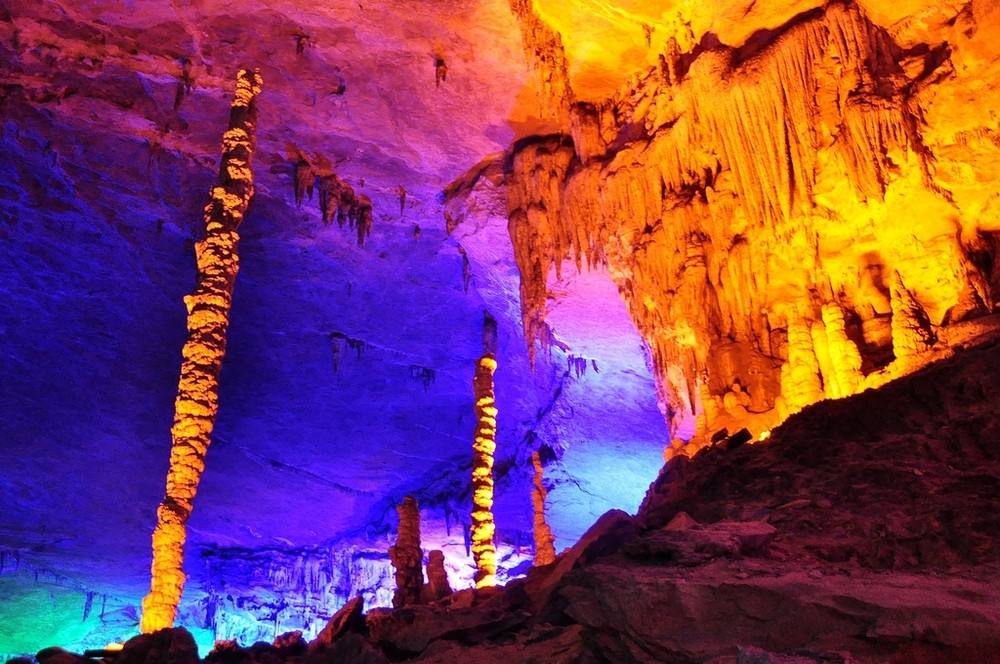 九龙洞位于铜仁城东的观音山山腰,是一个大型的天然喀斯特溶洞。洞内拥有各种形态各异的钟乳石,再配以五颜六色的灯光照射,美丽壮观,让人感慨于大自然的鬼斧神工。