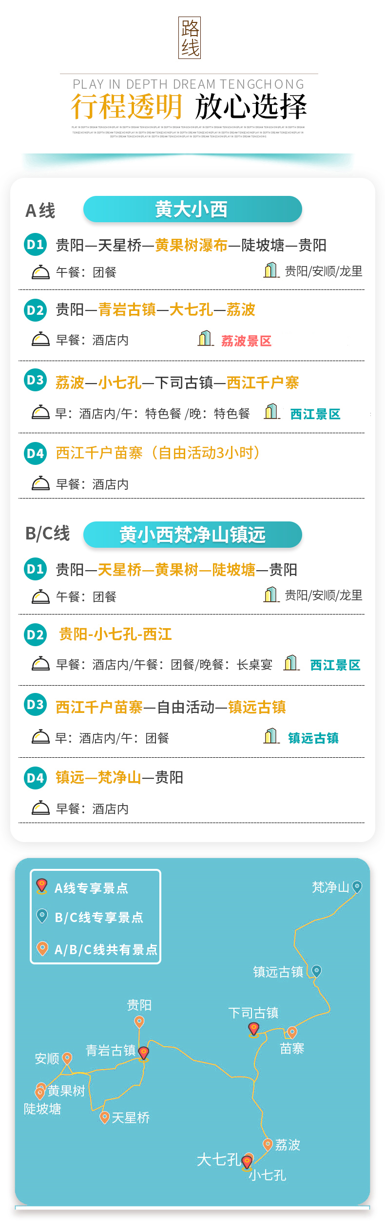 B线:黄果树+荔波小七孔+西江苗寨+镇远+梵净山 呀,20人团 呀, 呢2+1保姆车 嗯, 呢全程精选高钻住宿, 🙅♂️西江宿景区