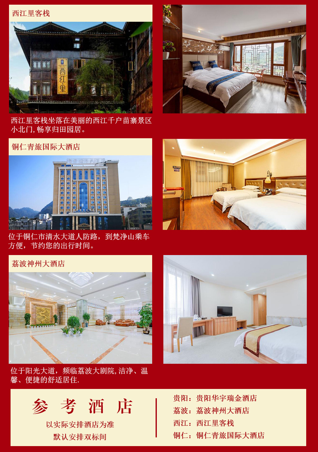 A线:5晚品质酒店+1晚苗寨客栈, 嗯当地参团