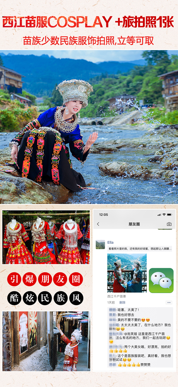 赠送五:成人赠苗服体验1次,苗服拍照1张,照片当场打印。
