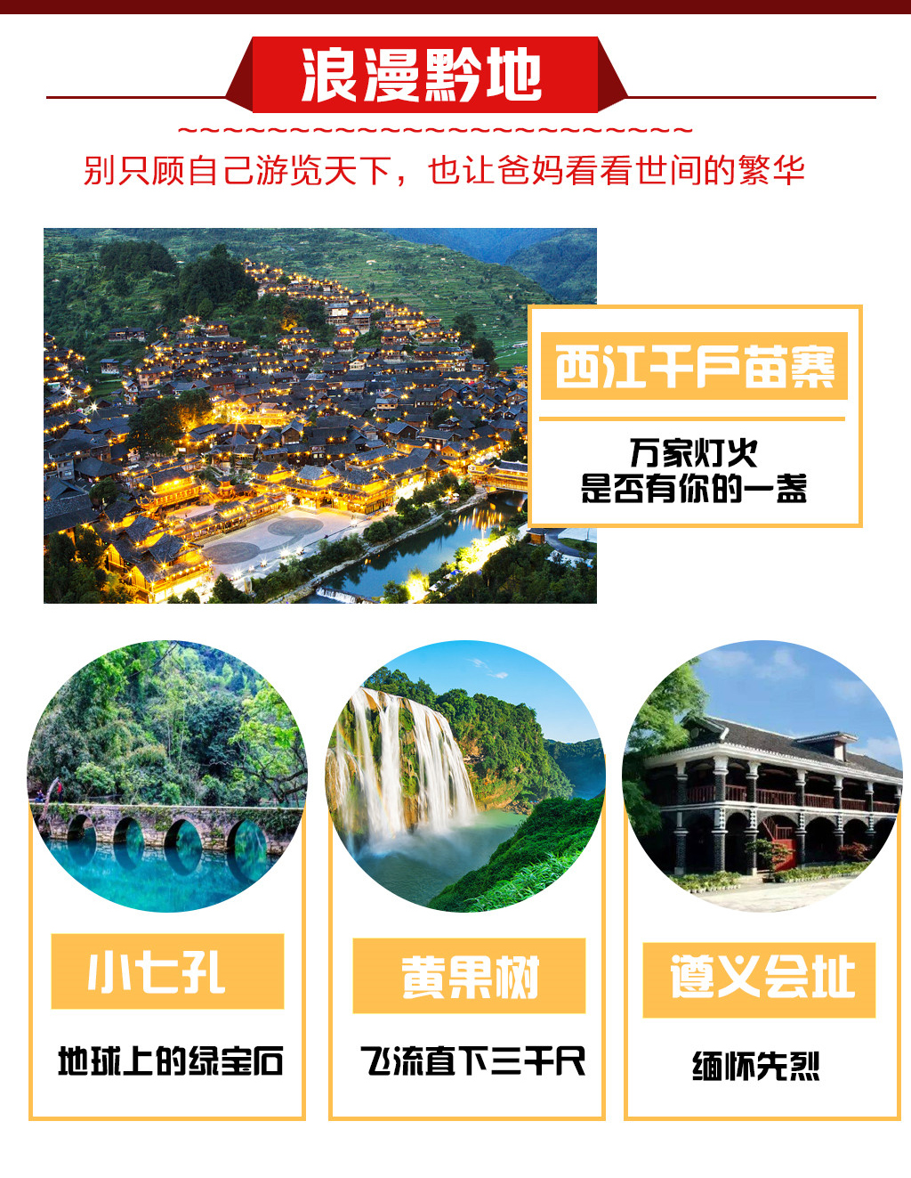 【精华景点】黄果树瀑布数生步、小七孔天然绿宝石、蚩尤的后裔西江苗寨、青岩古镇、遵义会址