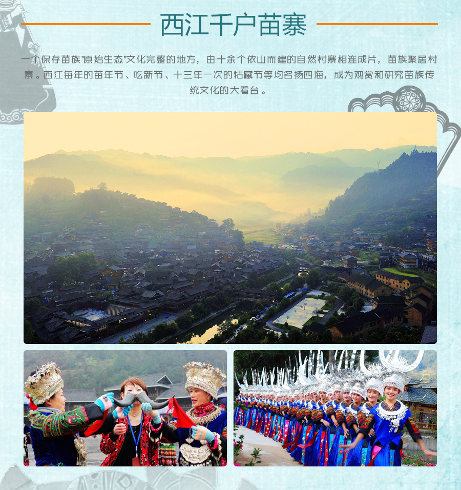 精选精华:世界自然遗产地、5A级荔波小七孔风景区,5A级黄果树风景区, 呢苗寨活化石的代表《西江千户苗寨》