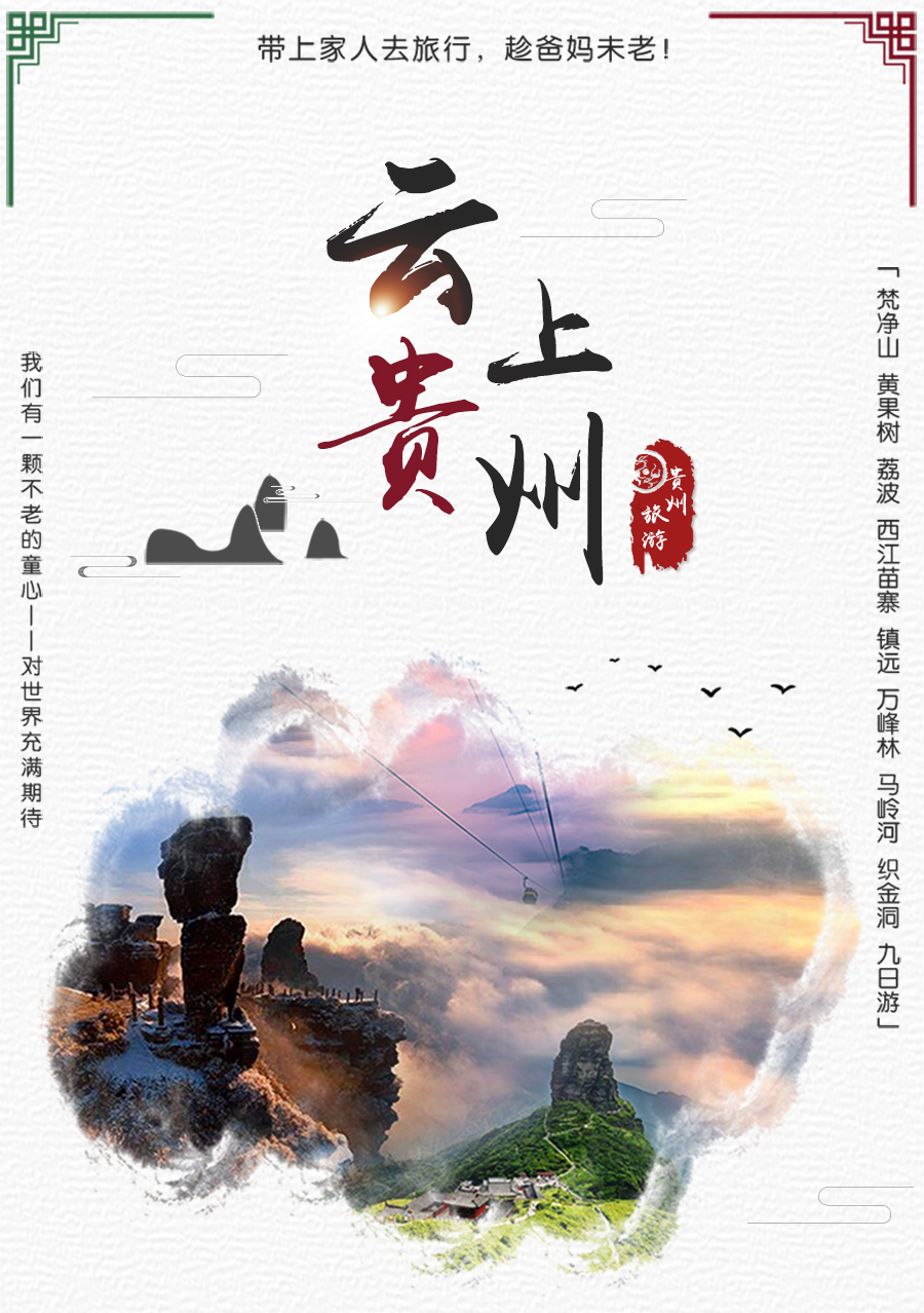 【核心景区】梵净山 呢,黄果树 👩🎨, 嗯荔波 呀,西江苗寨 👼,镇远 🧘,万峰林马岭河, 👳织金洞