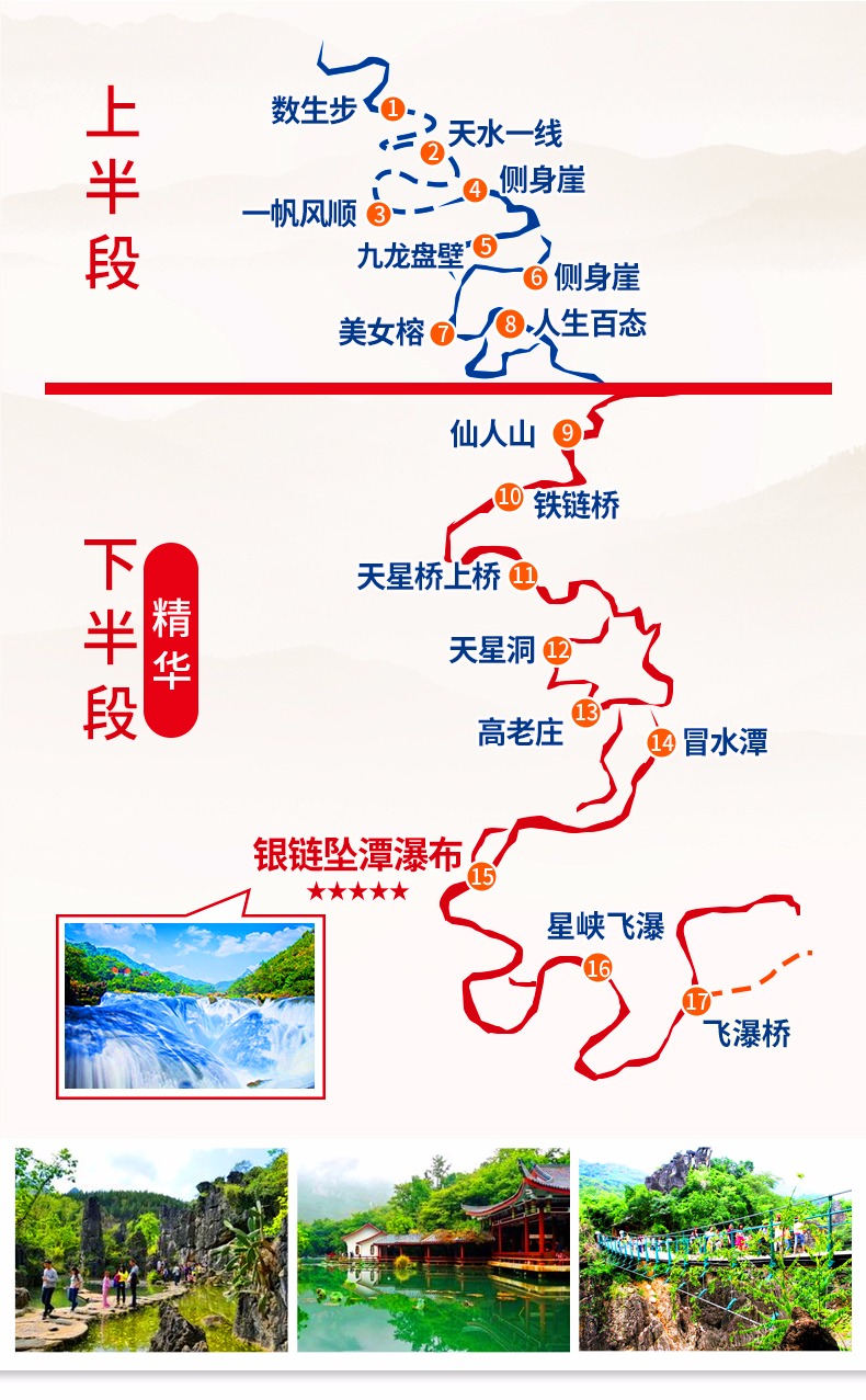 4、特别安排黄果树景区内天星桥游览上下半段 呀, 🧑✈️绝不错过精华景点【银链坠潭】,深度游览
