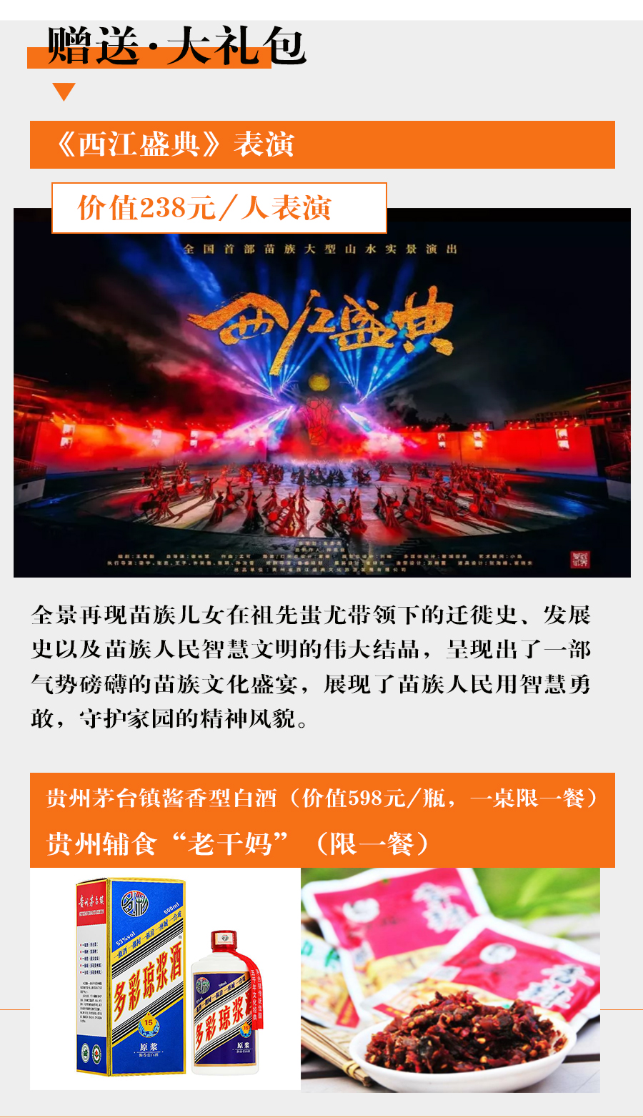 1.全程含观光车150元/人·短裙苗之乡的实景民俗风情表演——《西江盛典》价值238元/人表演苗族民俗实景表演 💫,给您带来一场震撼心弦、如诗如梦视觉盛宴。