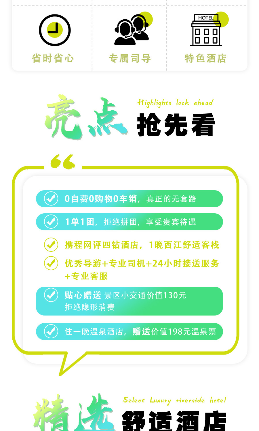 1、全程4钻酒店+西江1晚特色客栈+升级1晚贵阳5钻温泉酒店, 嗯深度体验西江夜色