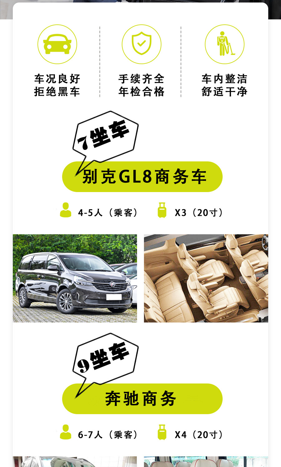 4、专属用车, 🤹♂️4-5人安排别克GL8;6-7人安排奔驰商务,8人以上安排金龙/宇通/海格旅游巴士 呀,尽量满足您的用车需求!