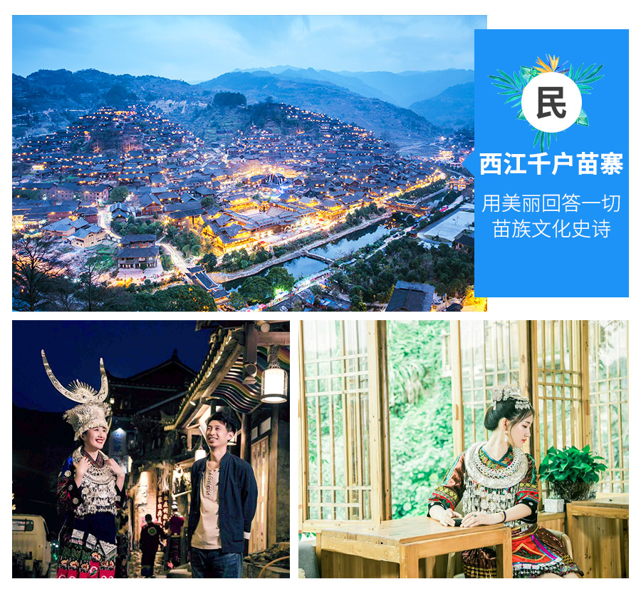 贵州崇山峻岭间的千户苗寨宛如被时光遗忘的仙境,承载苗族千年历史文化。上千户吊脚楼依山层叠似画卷,木质建筑古朴精美。漫步石板路似穿越回古时光,苗族同胞着传统服饰、戴银饰,街道满是生活气息。苗族博物馆展现民族故事,夜景如梦似幻,美食如长桌宴令人垂涎,还能穿苗族服饰拍写真。来千户苗寨,远离喧嚣,开启难忘心灵之旅。