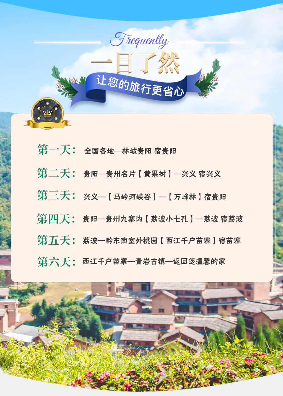 1、若您不需要往返大交通 呀, 😤请戳【当地游】产品:贵州黄果树+万峰林景区+马岭河峡谷+荔波+西江千户苗寨+青岩古镇6日5晚私家团(5钻)