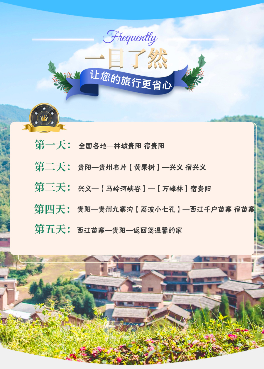 1、若您不需要往返大交通 🏊,请戳【当地游】产品:贵州黄果树+万峰林+马岭河峡谷+荔波小七孔+西江千户苗寨5日4晚私家团(5钻)