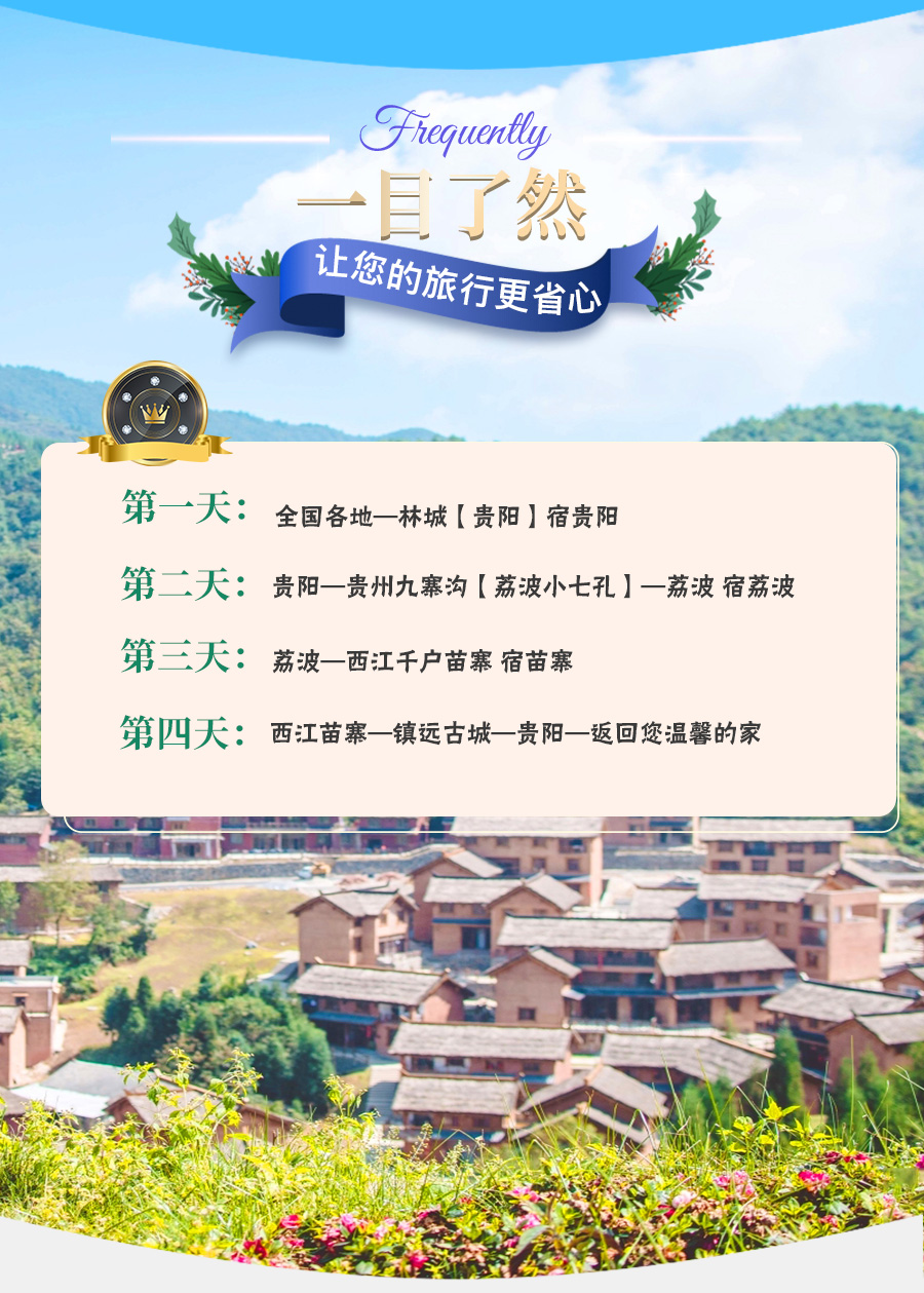 1、若您不需要往返大交通 呀, 呀请戳【当地游】产品:贵州贵阳+荔波小七孔景区+西江千户苗寨+镇远4日3晚私家团(5钻) 当地游