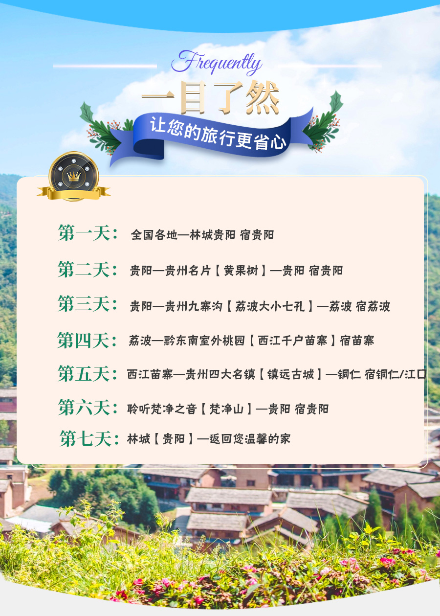 若您不需要往返大交通 嗯,请戳【当地游】产品:贵州黄果树+荔波+西江千户苗寨+镇远+梵净山7日6晚私家团(5钻)