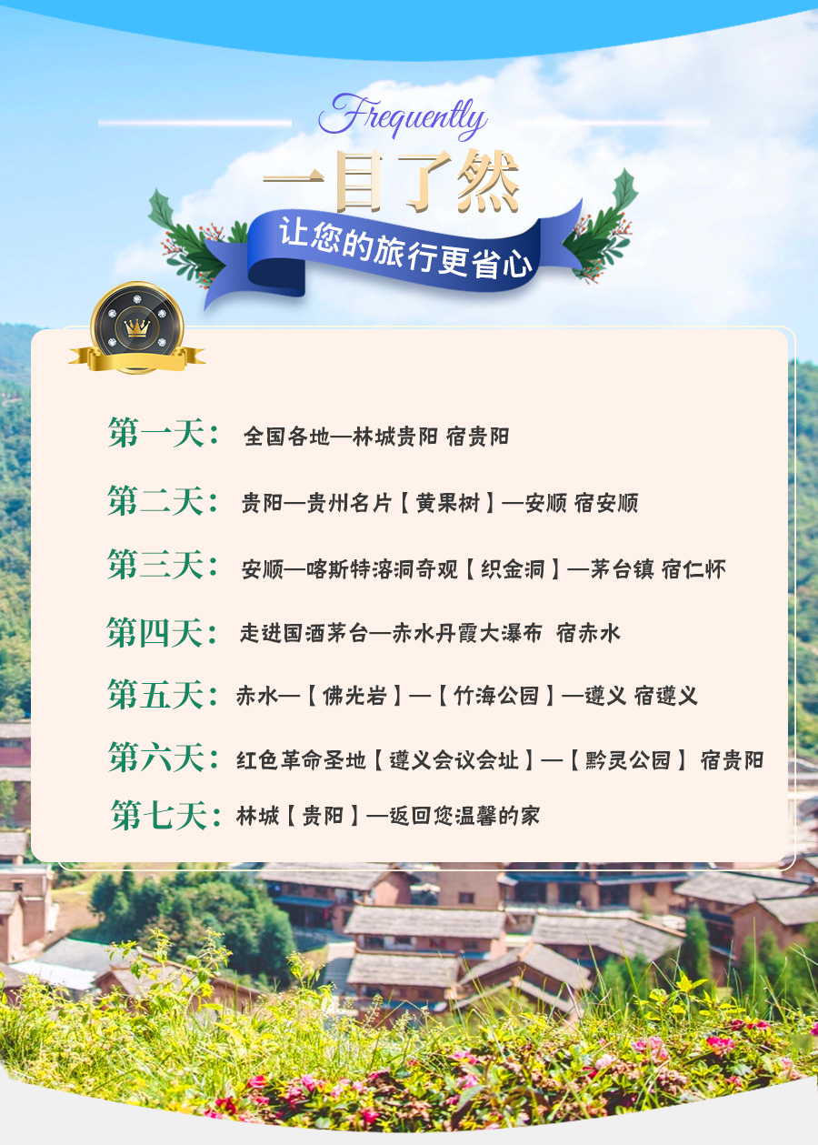 若您不需要往返大交通 呢,请戳【当地游】产品:贵州黄果树+织金洞+仁怀茅台镇+赤水丹霞·大瀑布+佛光岩+竹海公园+遵义会议会址7日6晚私家团(4钻)