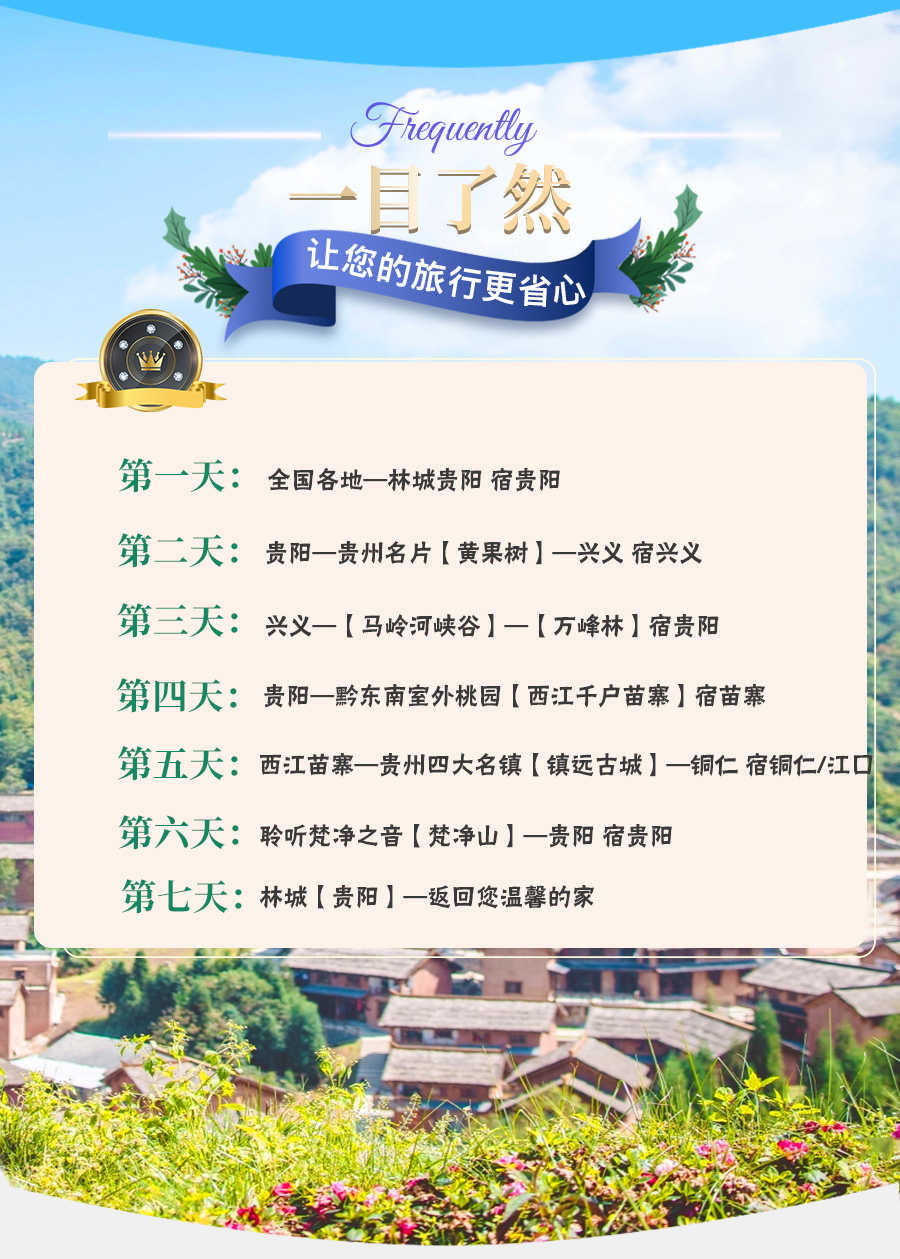 若您不需要往返大交通 呢,请戳【当地游】产品:贵州黄果树+万峰林+马岭河峡谷+西江千户苗寨+梵净山7日6晚私家团(5钻)