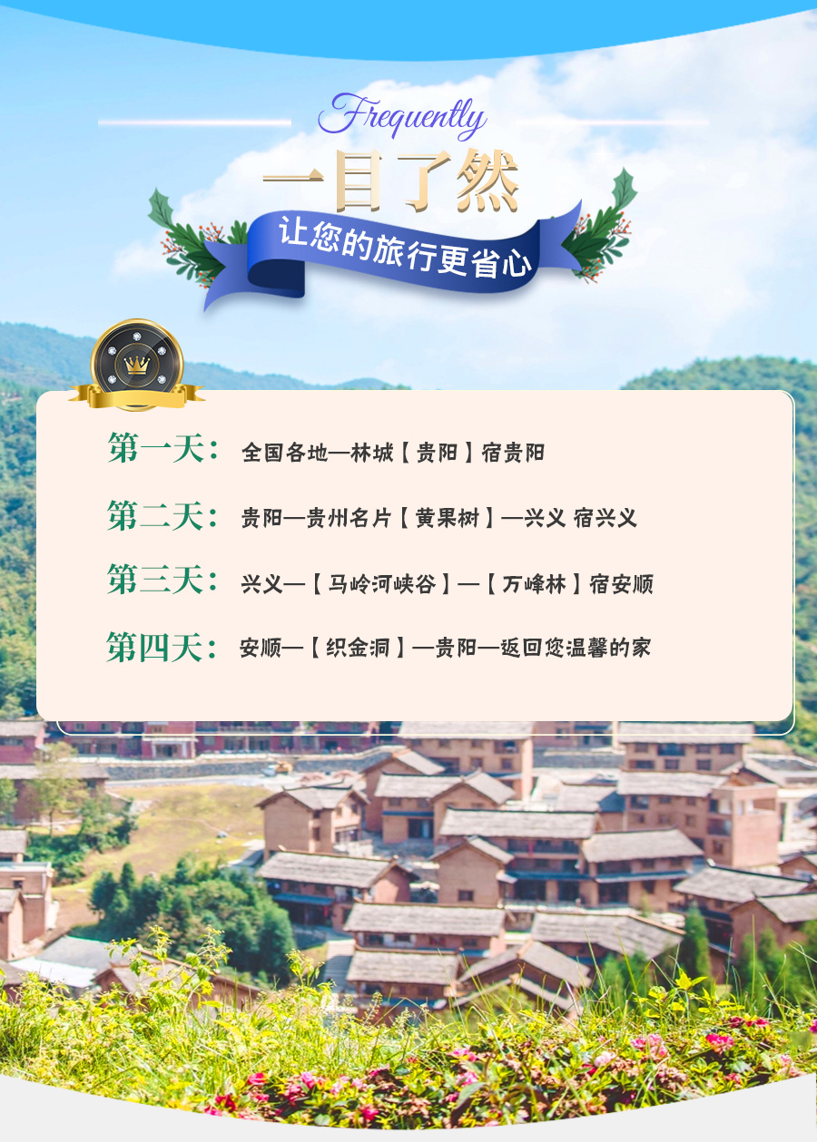 1、若您不需要往返大交通,请戳【当地游】产品:贵州贵阳+黄果树+万峰林景区+马岭河+织金洞4日3晚私家团(5钻)