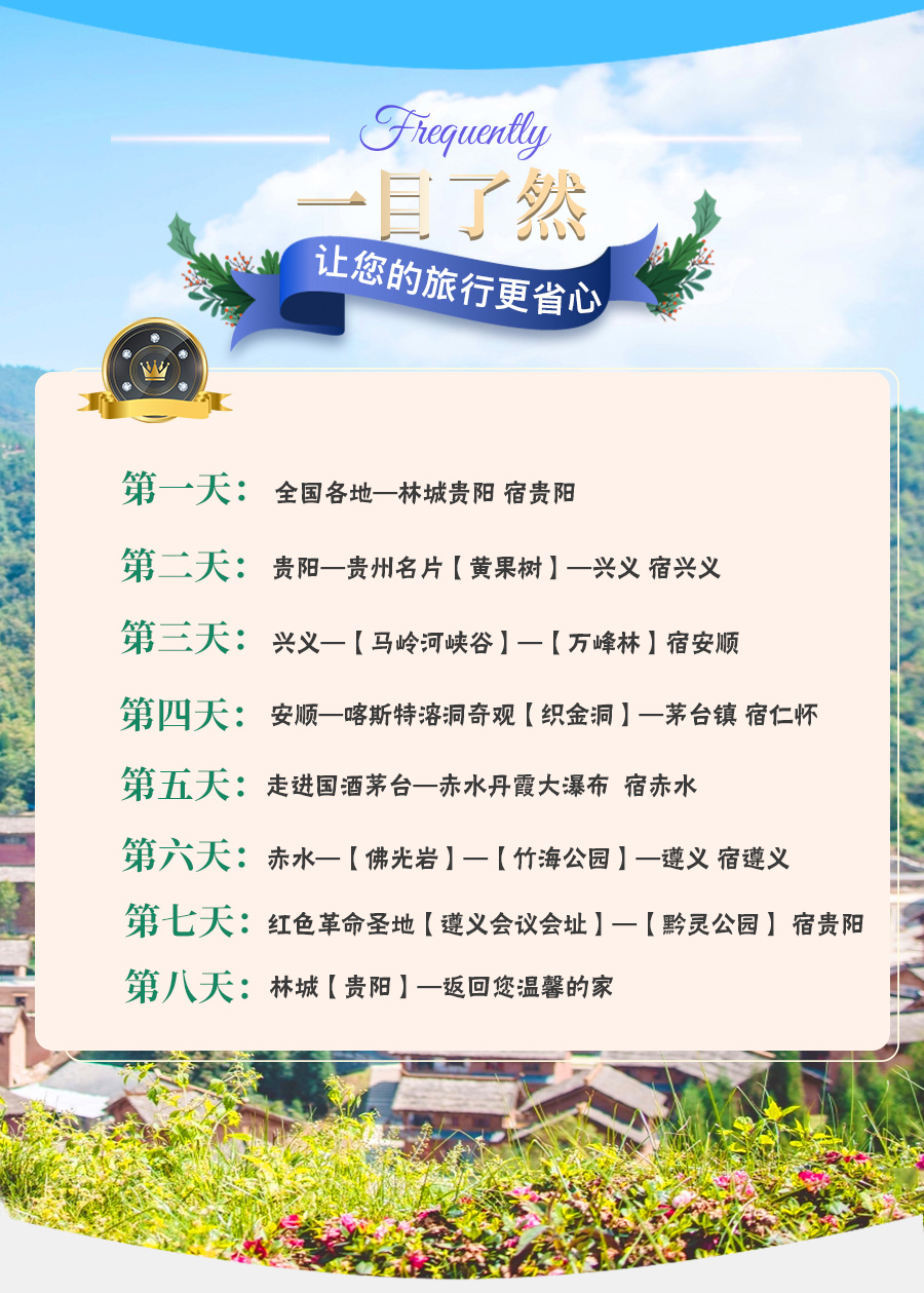 若您不需要往返大交通,请戳【当地游】产品:贵州黄果树+万峰林景区+马岭河+织金洞+赤水丹霞旅游区·大瀑布8日7晚私家团(5钻)