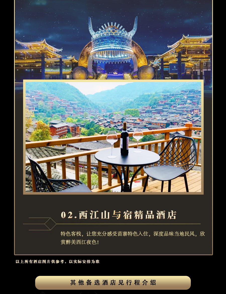1、全程5钻酒店+西江1晚特色客栈,醉美西江夜色