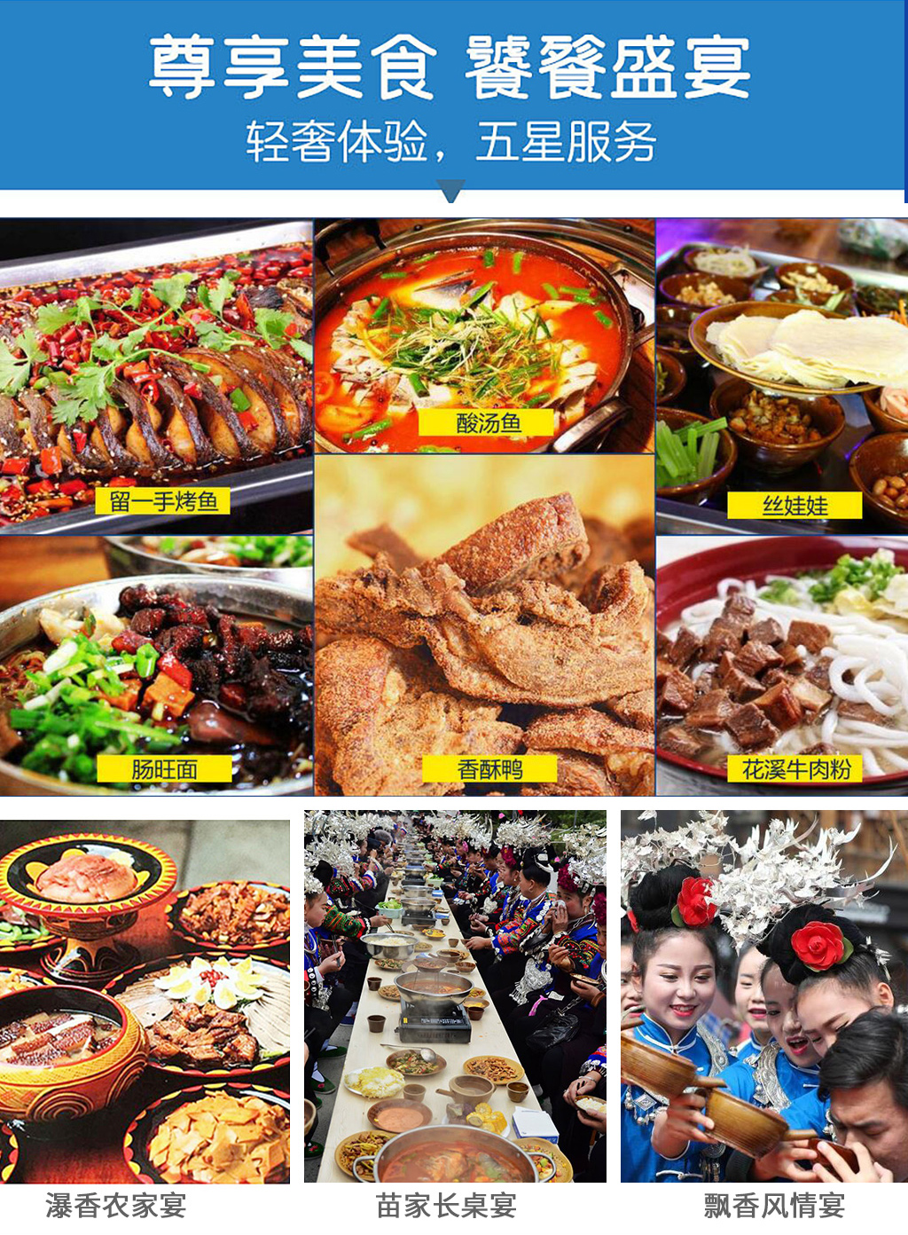 瀑香农家宴 + 飘香风情宴 + 苗家长桌宴, 呀各地特色美味必须呈上 嗯,不用担心吃得不好;