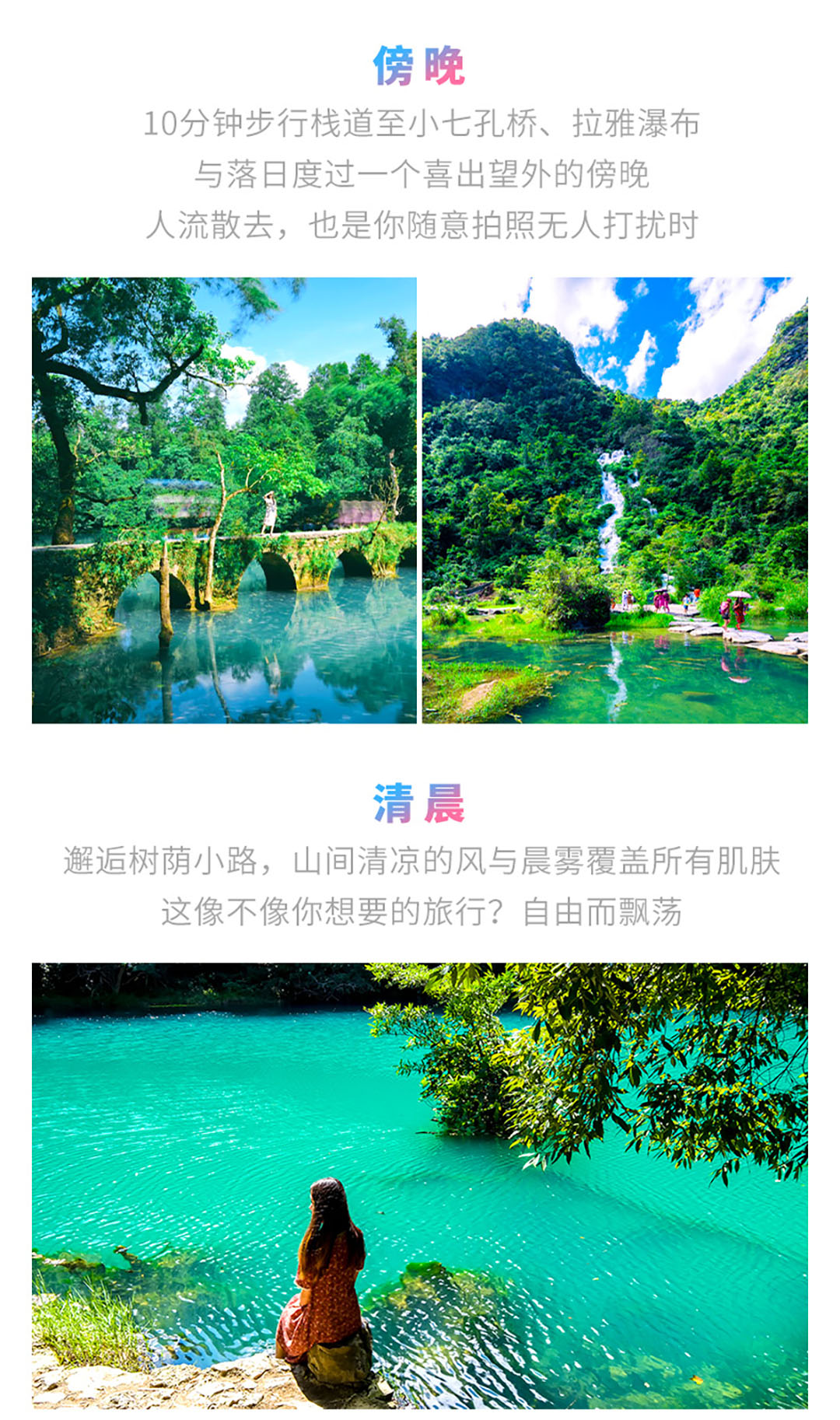 4、特别安排黄果树景区内天星桥游览上下半段,绝不错过精华景点【银链坠潭】,深度游览。