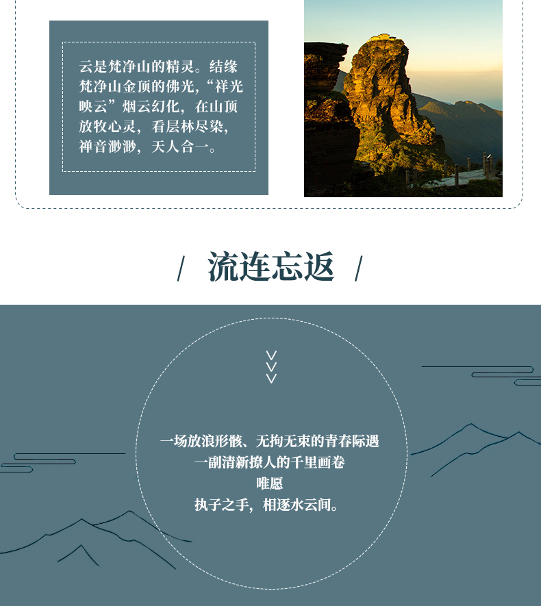3.贵州地处云贵高原地区 呀,山路较多 呢, 嗯请穿轻便、柔软休闲鞋子;贵州素有天无三日晴之说 呀,天气多雨,请自备雨伞;少数民族寄居地, 嗯请遵循当地风俗。