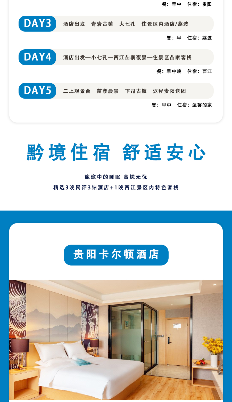 1.由于西江苗寨坐落在山涧,当地客栈房间难免会有潮润的情况 🤲,且西江住宿无星级标准,单家客栈房间数量较少 呀,一个散拼团有可能会分几家客栈住宿, 呢敬请理解。
