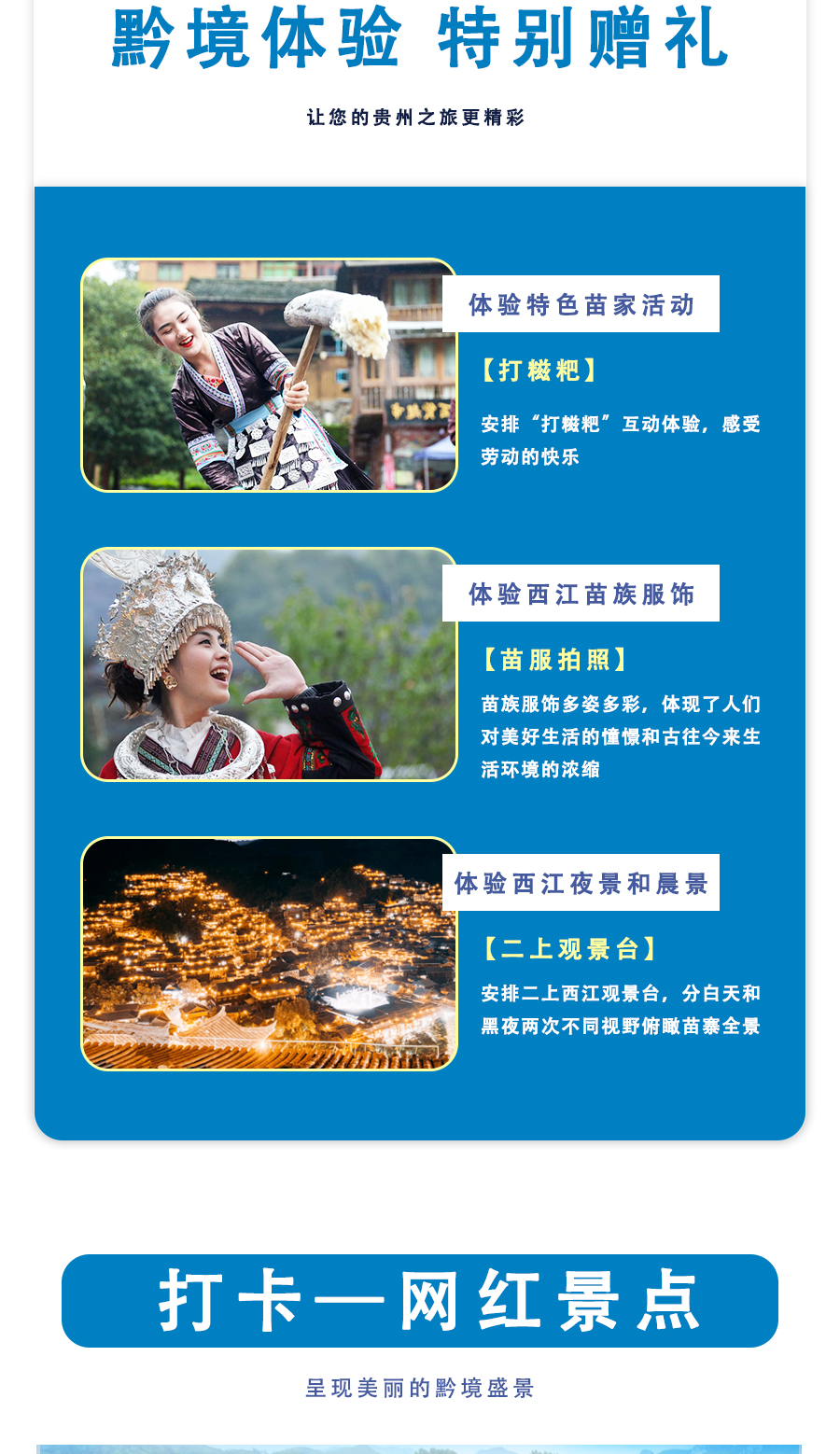 游双古镇、住西江景区、观苗寨夜景