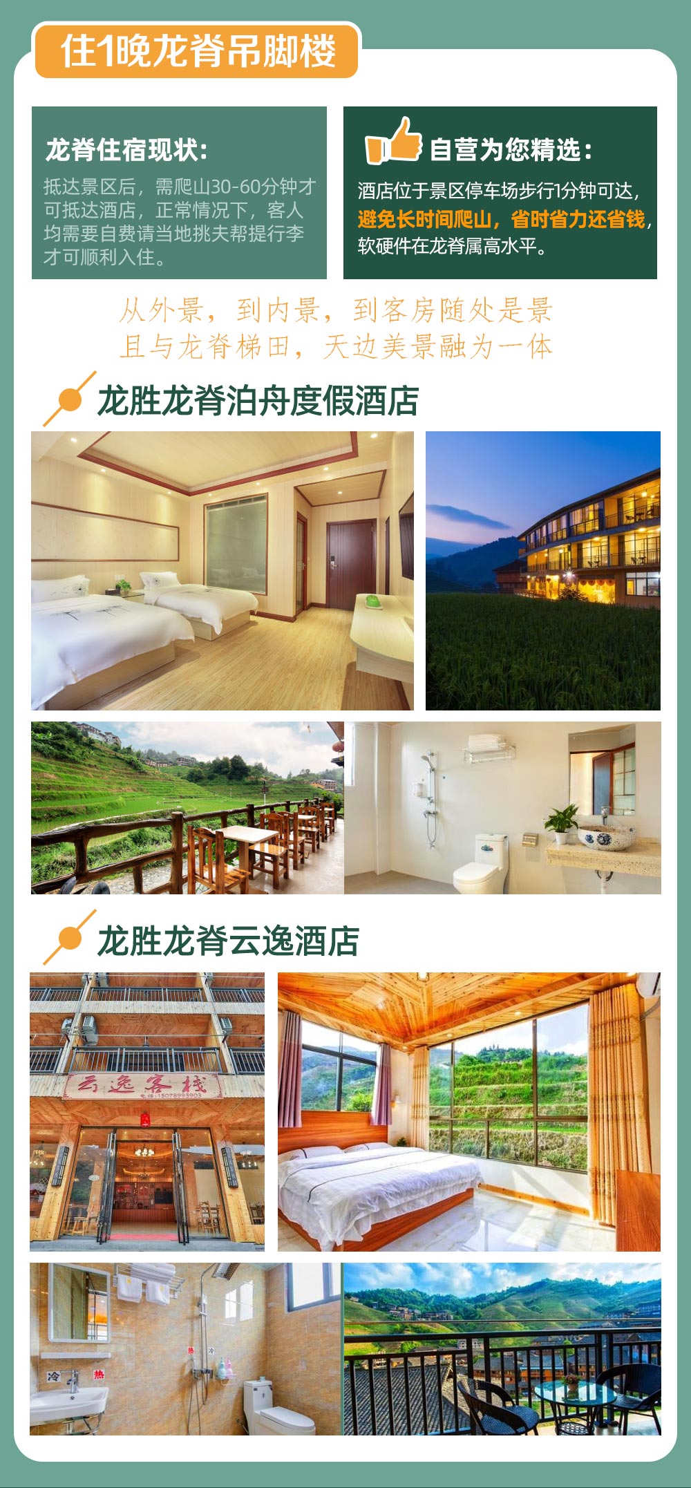 ◆ 一晚当地特色吊脚楼 💇♀️,体验当地民族风情,赏超赞龙脊日出美景。