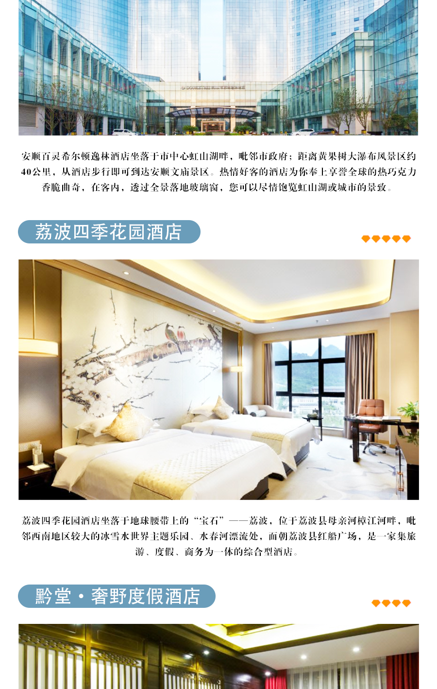贵州是一个山多水美的省份,贵州的气候条件是非常好的哦,总体来说,夏无酷暑,冬无严寒,夜雨较多,清风拂面,气候复杂多样,垂直差异明显,可以说一山有四季,十里不同天,旅游季节较长,全年都可游览。再一个就是...