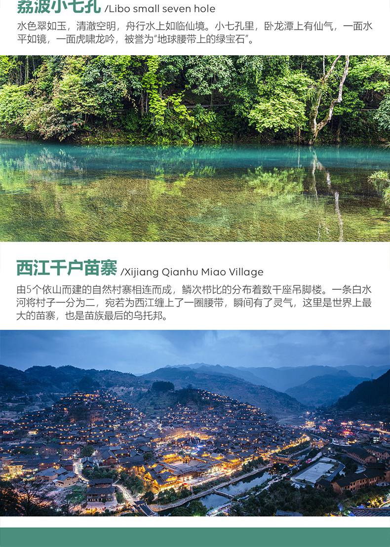 贵州崇山峻岭间的千户苗寨宛如被时光遗忘的仙境,承载苗族千年历史文化。上千户吊脚楼依山层叠似画卷,木质建筑古朴精美。漫步石板路似穿越回古时光,苗族同胞着传统服饰、戴银饰,街道满是生活气息。苗族博物馆展现民族故事,夜景如梦似幻,美食如长桌宴令人垂涎,还能穿苗族服饰拍写真。来千户苗寨,远离喧嚣,开启难忘心灵之旅。