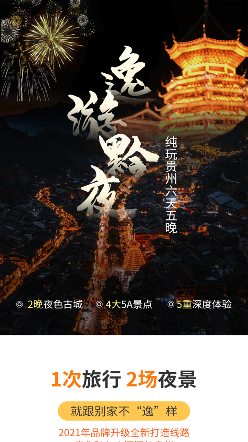 首页 定制 贵阳+黄果树+荔波+西江千户苗寨+镇远+梵净山6日5晚跟团游·【逸游 · 黔夜】纯玩·20人团(VIP陆地头等舱+2+1空间布局+135度座椅调节)西江+镇远古镇住进风景里 双夜景丨深度体验民风+特色长桌宴+四钻高品酒店