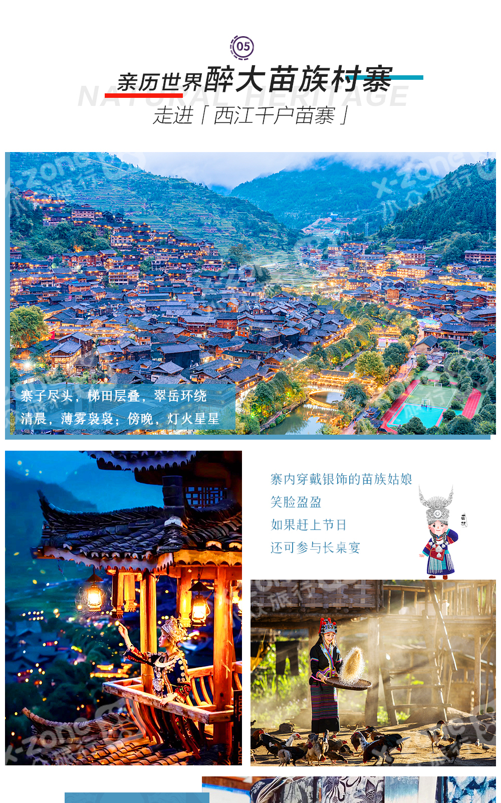 贵州崇山峻岭间的千户苗寨宛如被时光遗忘的仙境,承载苗族千年历史文化。上千户吊脚楼依山层叠似画卷,木质建筑古朴精美。漫步石板路似穿越回古时光,苗族同胞着传统服饰、戴银饰,街道满是生活气息。苗族博物馆展现民族故事,夜景如梦似幻,美食如长桌宴令人垂涎,还能穿苗族服饰拍写真。来千户苗寨,远离喧嚣,开启难忘心灵之旅。