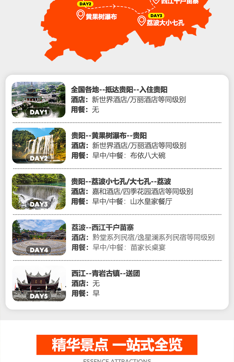 贵阳+黄果树+荔波+西江千户苗寨5日4晚跟团游·【16人精品纯玩小团】2+1陆地头等舱,超40%的空座率丨指定1晚西江观景房+五星酒店丨赠苗服体验+旅拍+品苗家长桌宴+高山流水敬酒礼+金牌导游服务+24小时接送