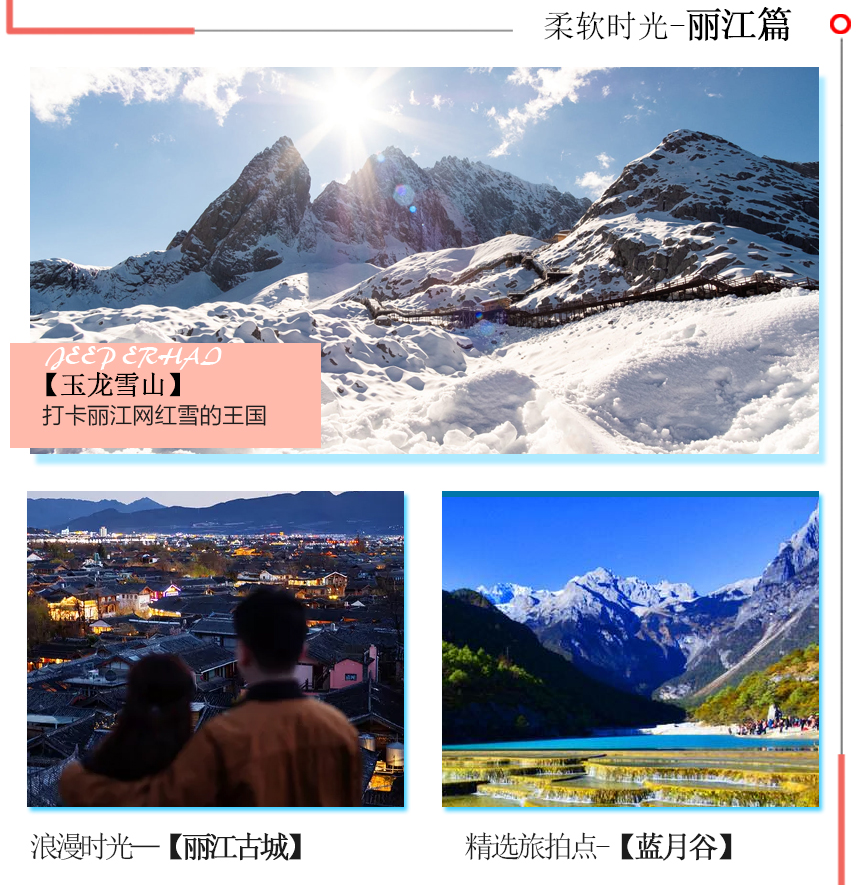 亮点4:各地直飞丽江 呢, 🧜♀️免您舟车劳顿 🫦, 🫄不用时间浪费在路上 呢, 👩🔬不必夜宿火车 👻,玩的开心。