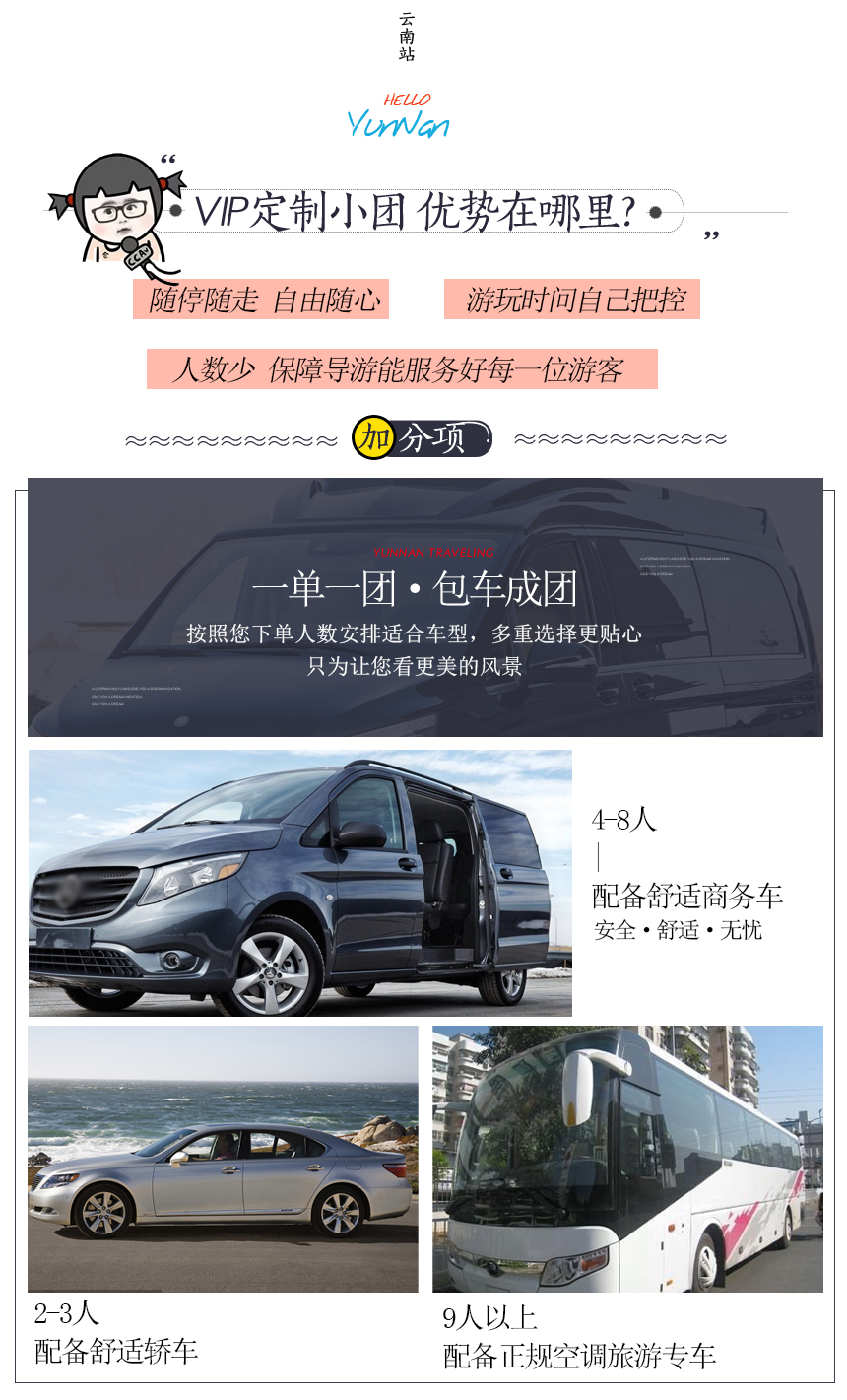 亮点5:1单1团 💤, 呢全程独立安排一辆车 😵, 呀私享专车, 呢自由出行,游玩时间自由掌握,行程更轻松