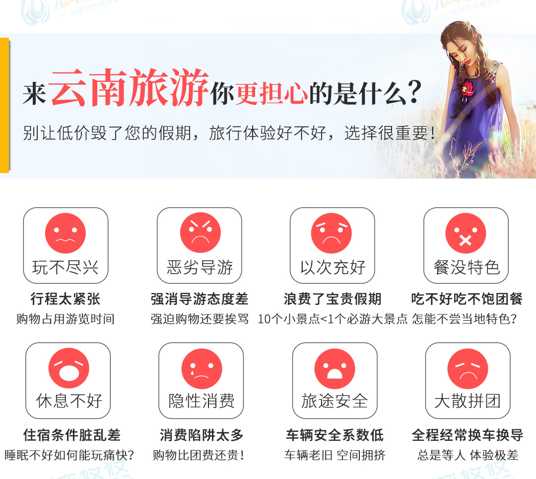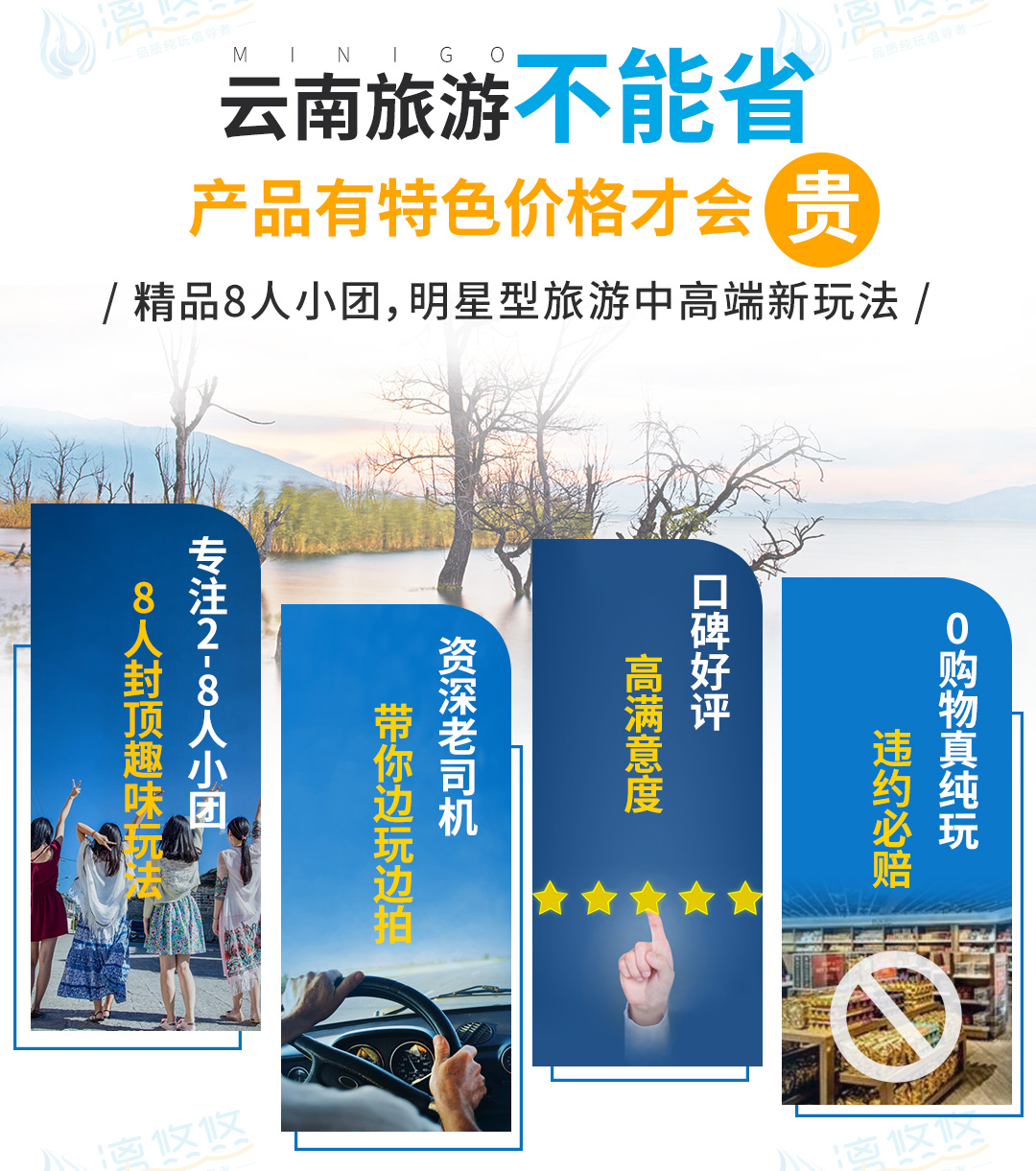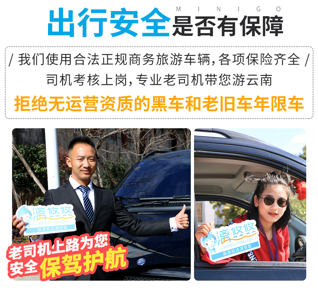 温馨提示:由于云南含高原地区,为了您的安全着想60周岁以上老年人预订出游, 嗯须有一位50岁以下成人陪同,且须与我司签订《免责协议》提供《健康证明》。